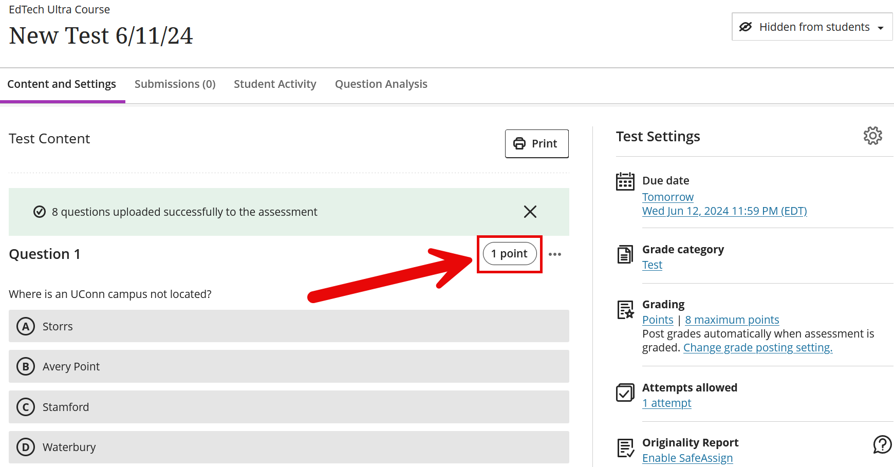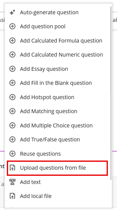 For more information about Uploading Questions, visit the Blackboard Support Center page.